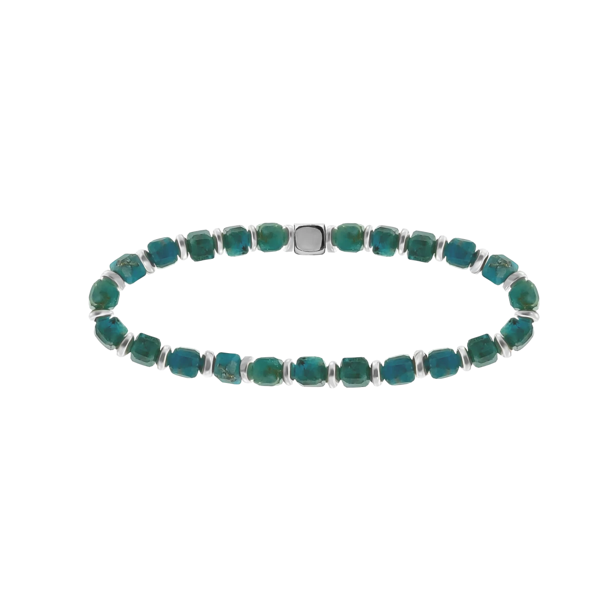 Az apatit ásvány kékes-zöldes árnyalatai felébresztik a kreativitást, míg az ezüst színű hematit kiegészítők eleganciát és modern hangulatot csempésznek viselője mindennapjaiba; ez a karkötő ideális ajándék lehet aktív férfiaknak, akik szeretnének kitűnni a tömegből.