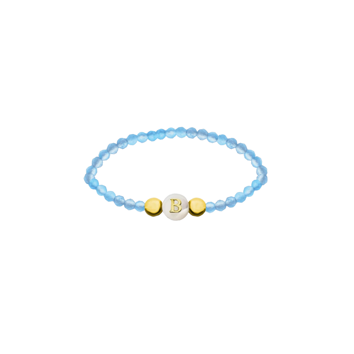 Kék Kristály Betű Medállal És Sárga Aranyozott Golyókkal Ezüst 925 Baby Karkötő