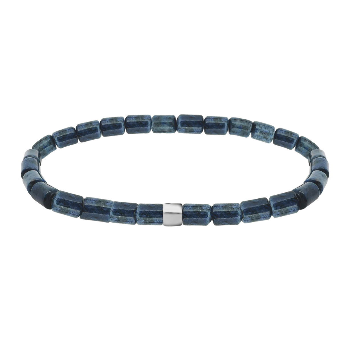 A dumortierit egy rendkívül ritka ásvány, melynek különleges kék árnyalatai azonnal magukra vonzzák a figyelmet. Nem csak szépsége, de viselőjének személyiségére gyakorolt pozitív hatásai miatt is értékes. A karkötő központi eleme egy ezüst kocka, ami tökéletes kontrasztot alkot a lekerekített fazonú dumortierit ásványokkal.