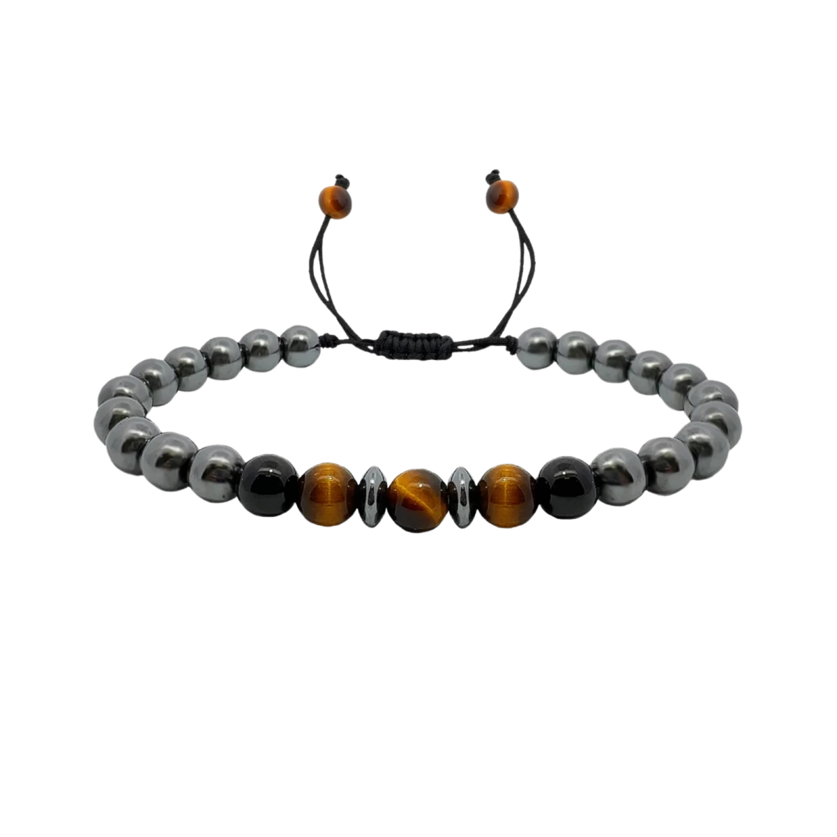Tigrisszem, fekete ónix és hematit ásványokból, makramé technikával készített karkötő férfiaknak. Igazán különleges darab, amelyet a tigrisszem különös csillogása még feltűnőbbé varázsol. Viselj te is trendi ásványokból készült kiegészítőket!